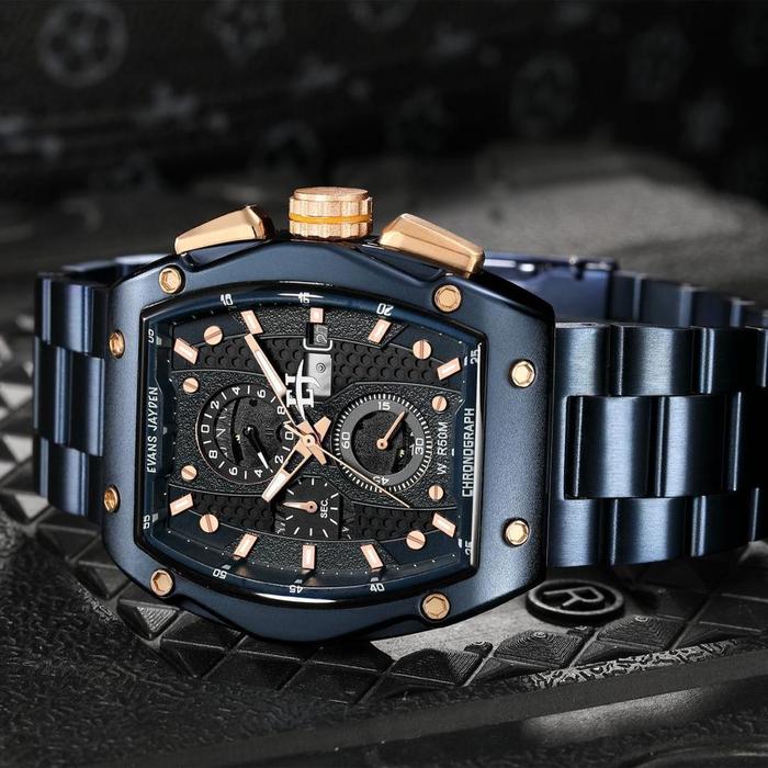 Evans Jayden Jam Tangan Pria 9556 Rantai Stainless Steel Kaca Sapphire Chronograph Water Resistant