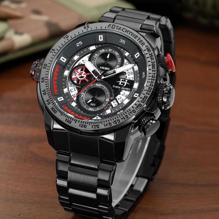 Evans Jayden Jam Tangan Pria 9466 Rantai Stainless Steel Chronograph Water Resistant 5 ATM Watches