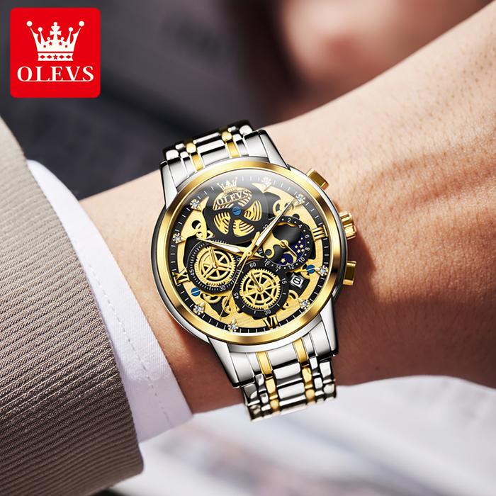 OLEVS Jam Tangan Pria Anti Air Original Rantai Keren Mewah 2025 Luxury Stainless Steel Chronograph