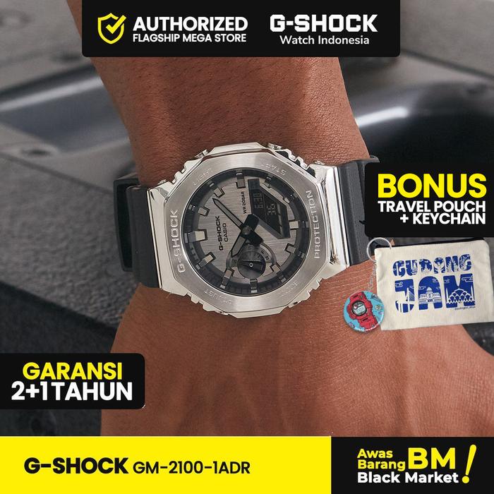 G-Shock GShock GM-2100-1ADR GM-2100-1A GM-2100 GM2100 GM 2100 Stainless Watches Kaca Silver Crystal