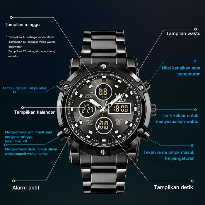 OLEVS Jam Tangan Pria Anti Air Original Digital Multifungsi Kronograf LED Alarm Tahan Air 30 Meter
