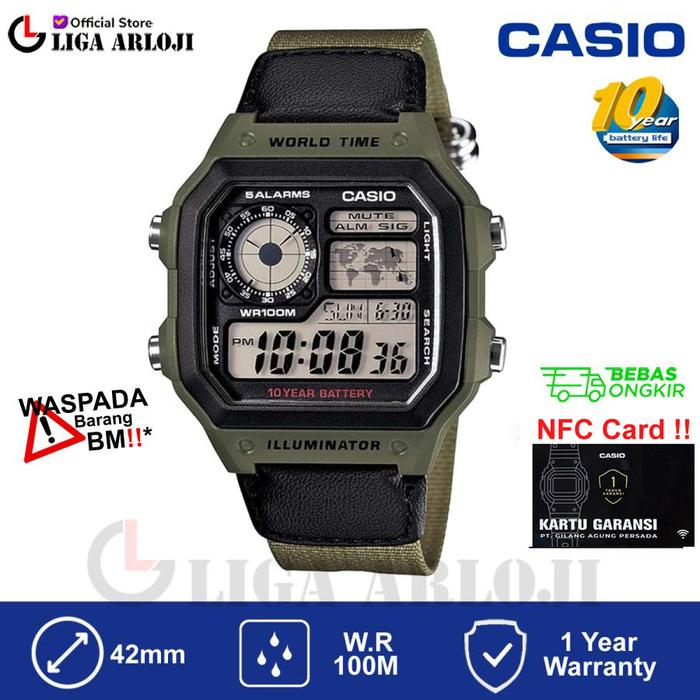 CASIO AE-1200WHB-3BVDF Jam Tangan Pria Digital Kanvas Hijau AE1200WHB AE1200WHB3BVDF AE 1200WHB