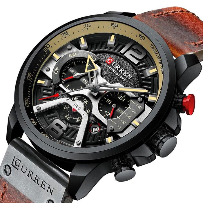 Jam Tangan Pria Analog Tali Kulit Chronograph CURREN 8329