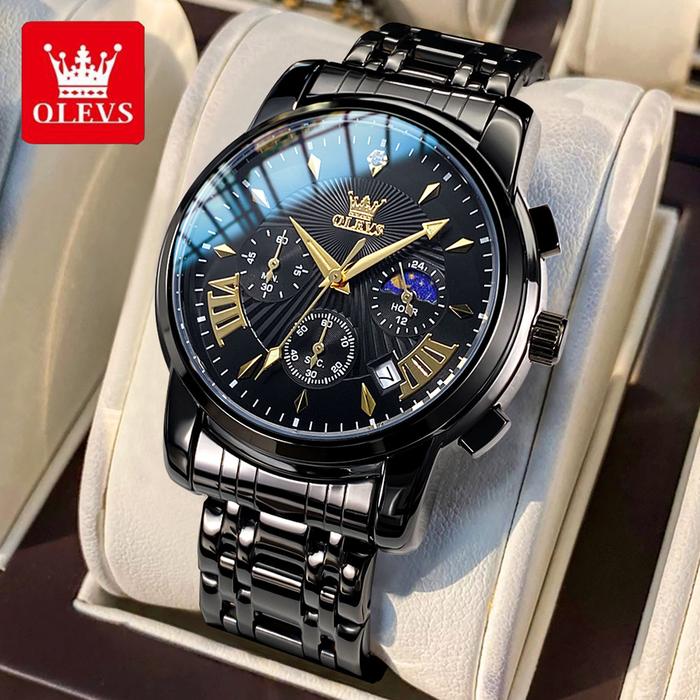 OLEVS Jam Tangan Pria Anti Air Cowok Original Chronograph 2025 Tahan Led Sport Stainless Steel Men