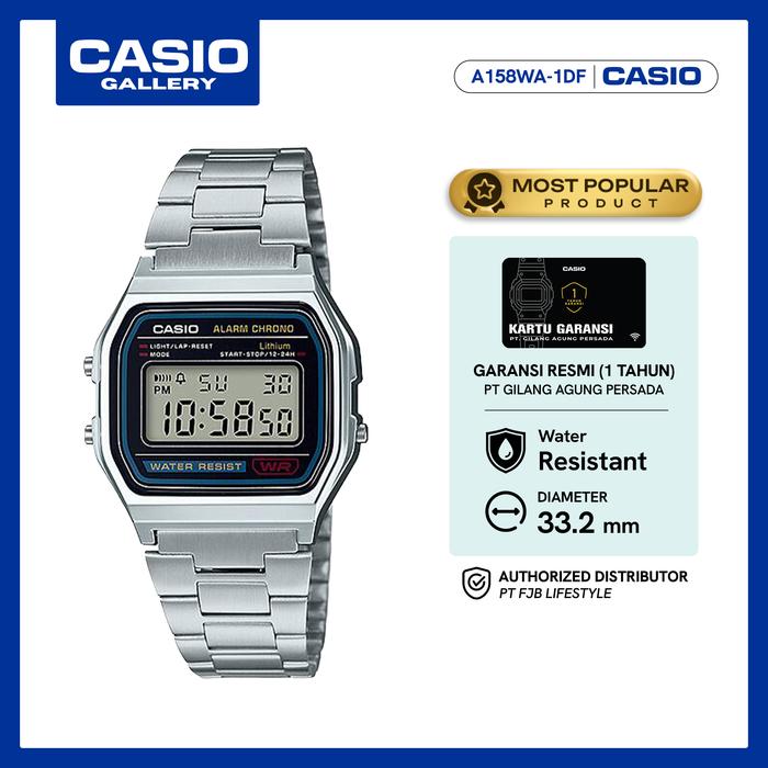 Casio Jam Tangan Unisex General A158WA-1DF Original Digital Silver