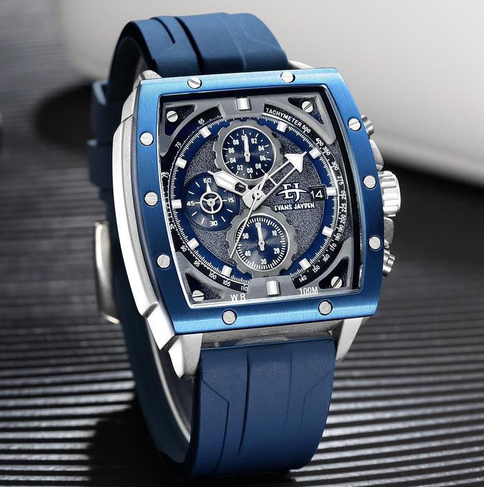 Evans Jayden Jam Tangan Pria 9463-1 Rubber Stainless Steel Kaca Sapphire Chronograph Water Resistant