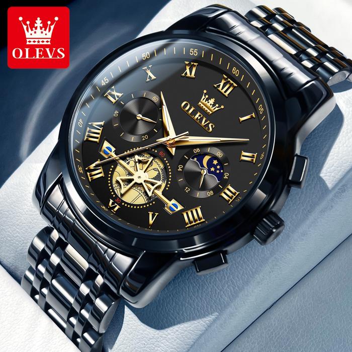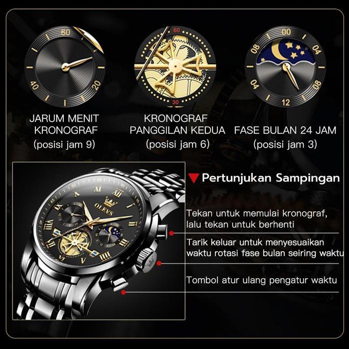 OLEVS Jam Tangan Pria Original Anti Air Tahan Luminous Fashion Analog Chronograph Stainless Steel