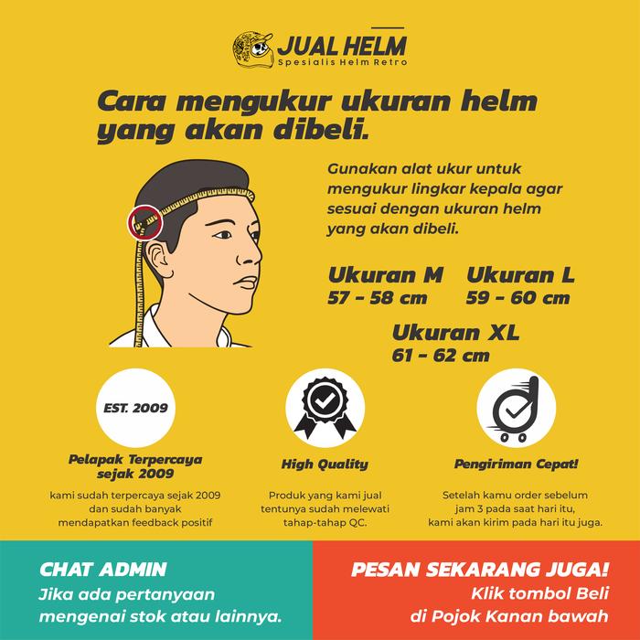 Helm Cargloss YRM Ghotic | Kaca Visor Clear | Retro Bogo | Motorcycle | Jual Helm - Black Doff L