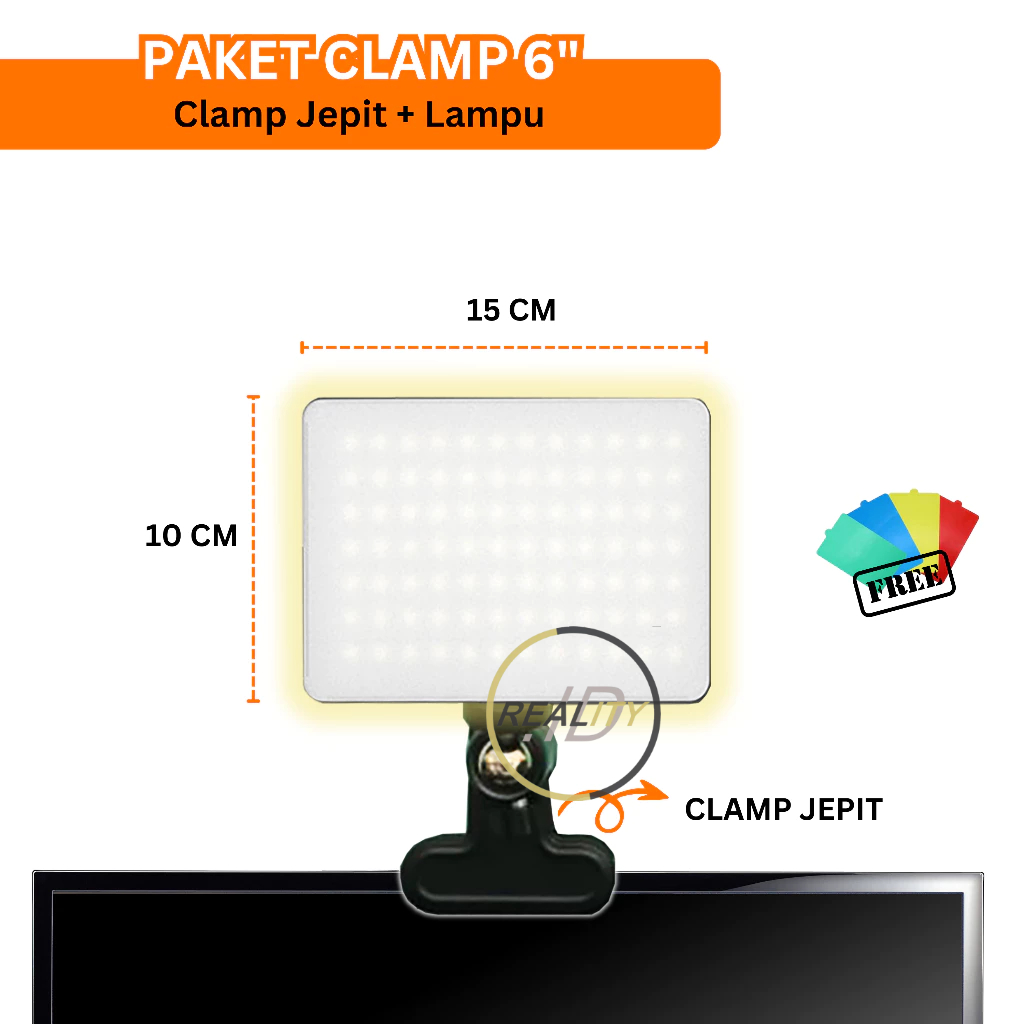 PAKET LAMPU FOTOGRAFI LIVE PENJEPIT CLAMP BESI LAMPU LED RGB GK-LM8 LIVE STREAMING MUA USB 4 WARNA KONTEN KREATOR LIVE S