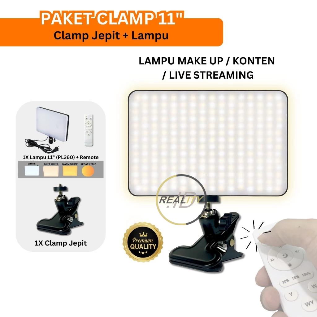 PAKET LAMPU JEPIT LIVE STREAMING 11 INCH PL-260 MAKE UP CLAMP PENJEPIT FOTOGRAFI MUA KONTEN KREATOR CLIP JEPIT KACA