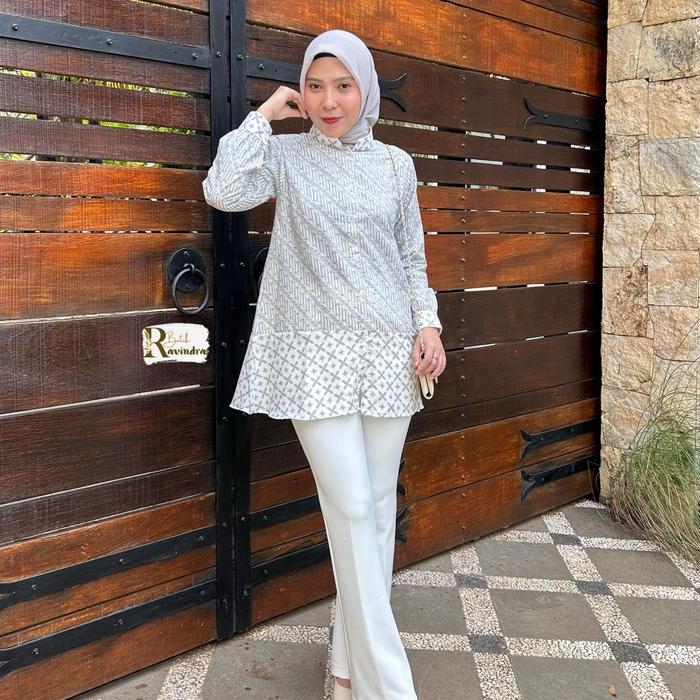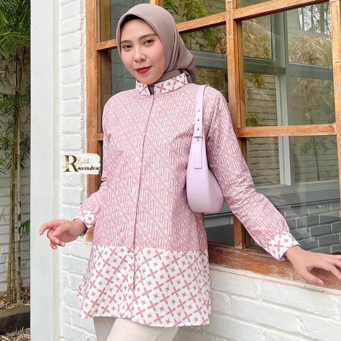 Batik Ravindra Blouse Batik Kerja Nadira Kancing Depan - Pink, S