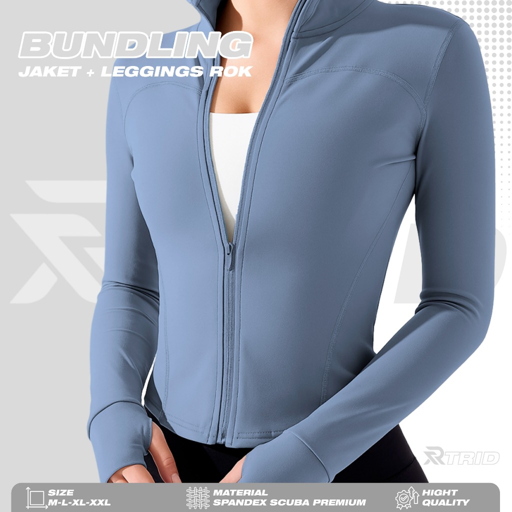 THEREAL.ID - Setelan Jaket Legging Rok Olahraga Wanita Lengan Panjang Gym Tenis Running Anti UV