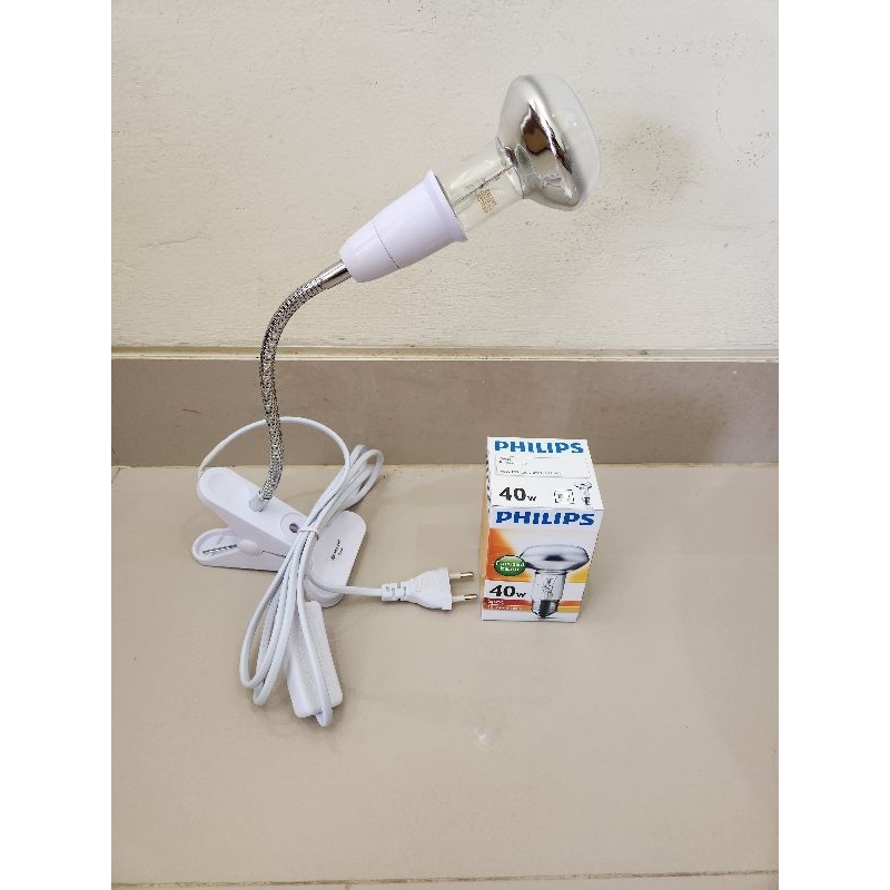 PAKET FITTING JEPIT KABEL 1.8MTR + LAMPU PENGHANGAT PHILIPS SPOT 40W