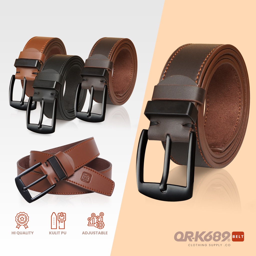 ORK689 Ikat Pinggang Pria Kulit PU Sabuk Gesper Belt Laki Laki Lebar 4cm Hiro