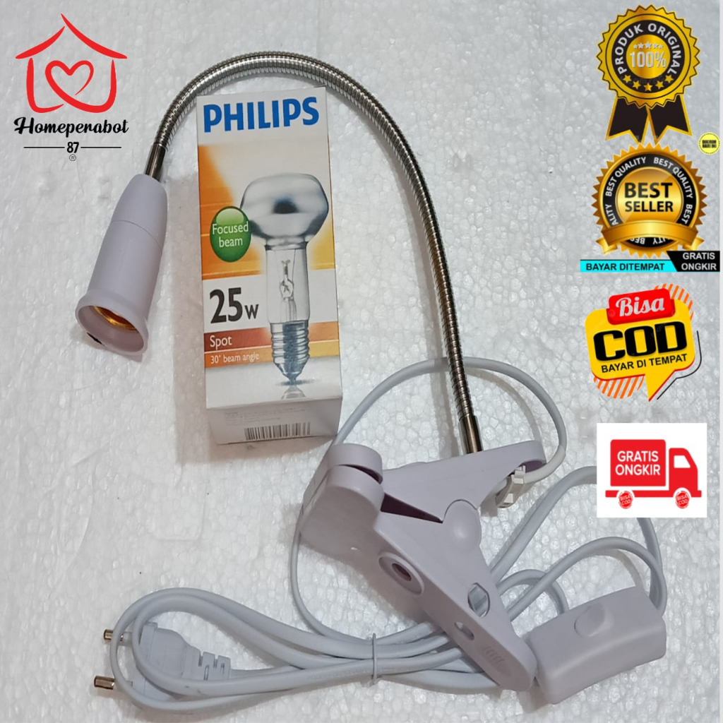 PAKET LAMPU PENGHANGAT PHILIPS SPOT 25 W + FITTING JEPIT KABEL 1,8 M + SAKLAR