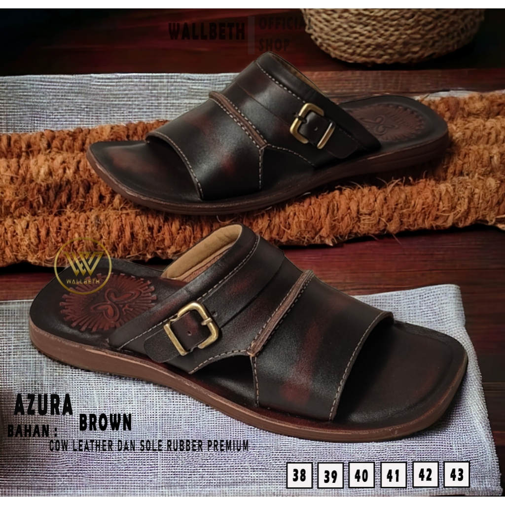 WALLBETH II Sandal Kulit Pria I Sandal Selop Pria Kulit Coklat Azura Series
