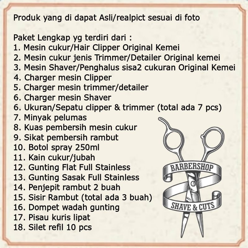 PAKET BARBER PRO ALAT CUKUR LENGKAP ORIGINAL KEMEI || BARBERSHOP/SALON/USAHA PANGKAS