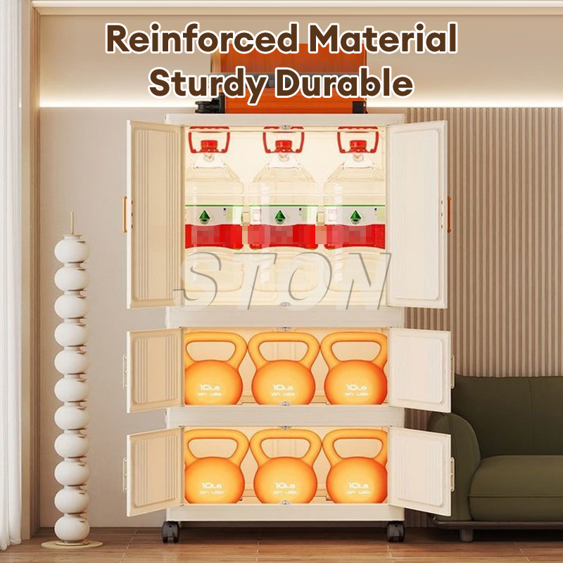 LEMARI pakaian PLASTIK Putih 80CM DENGAN GANTUNGAN-Rak Baju Tanpa Rakitan,Muat 50+Pakaian +Roda 360°