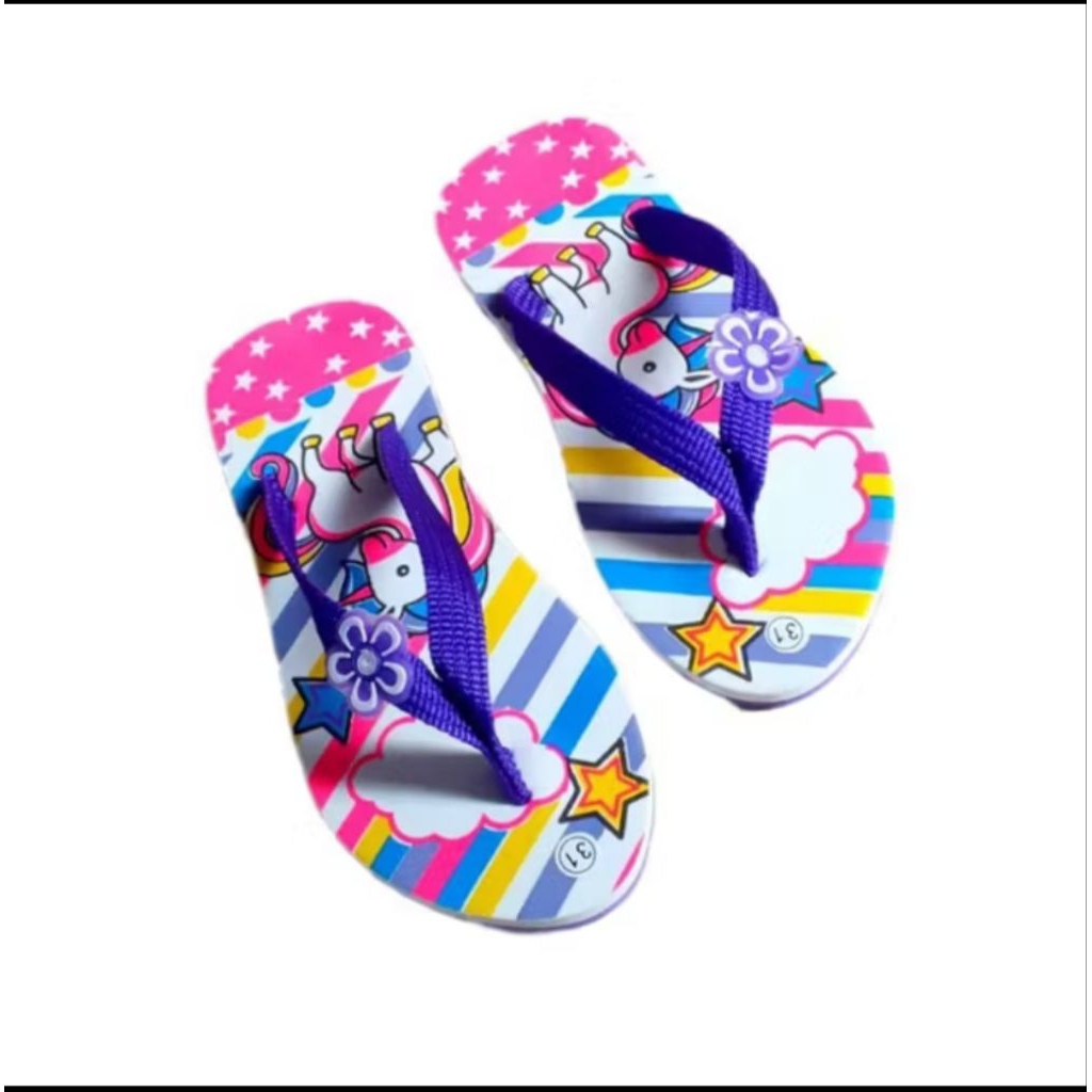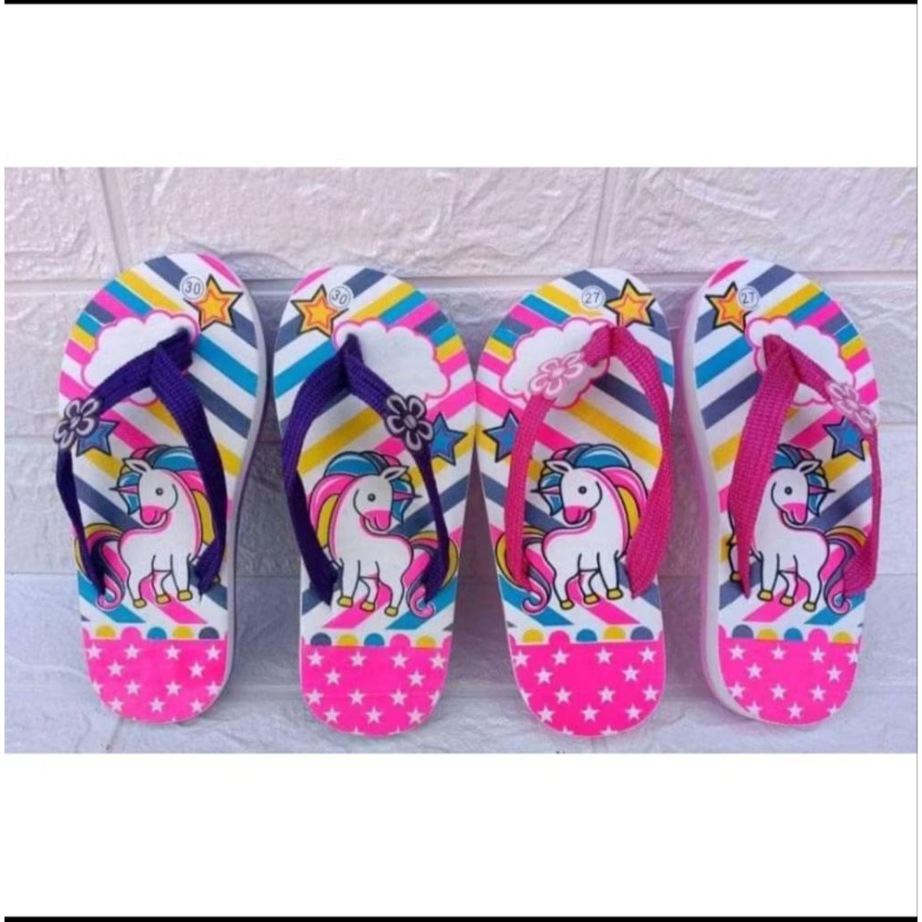 sandal jepit anak perempuan motif kuda poni rainbow terbaru 2023