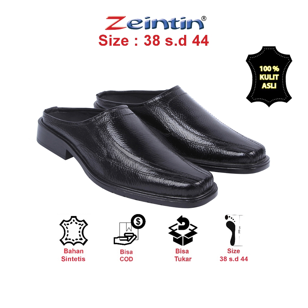 Zeintin - Sepatu Sandal Bustong Slip On Spatu Selop Pria Kulit Asli Sendal Tutong Kasual AJ