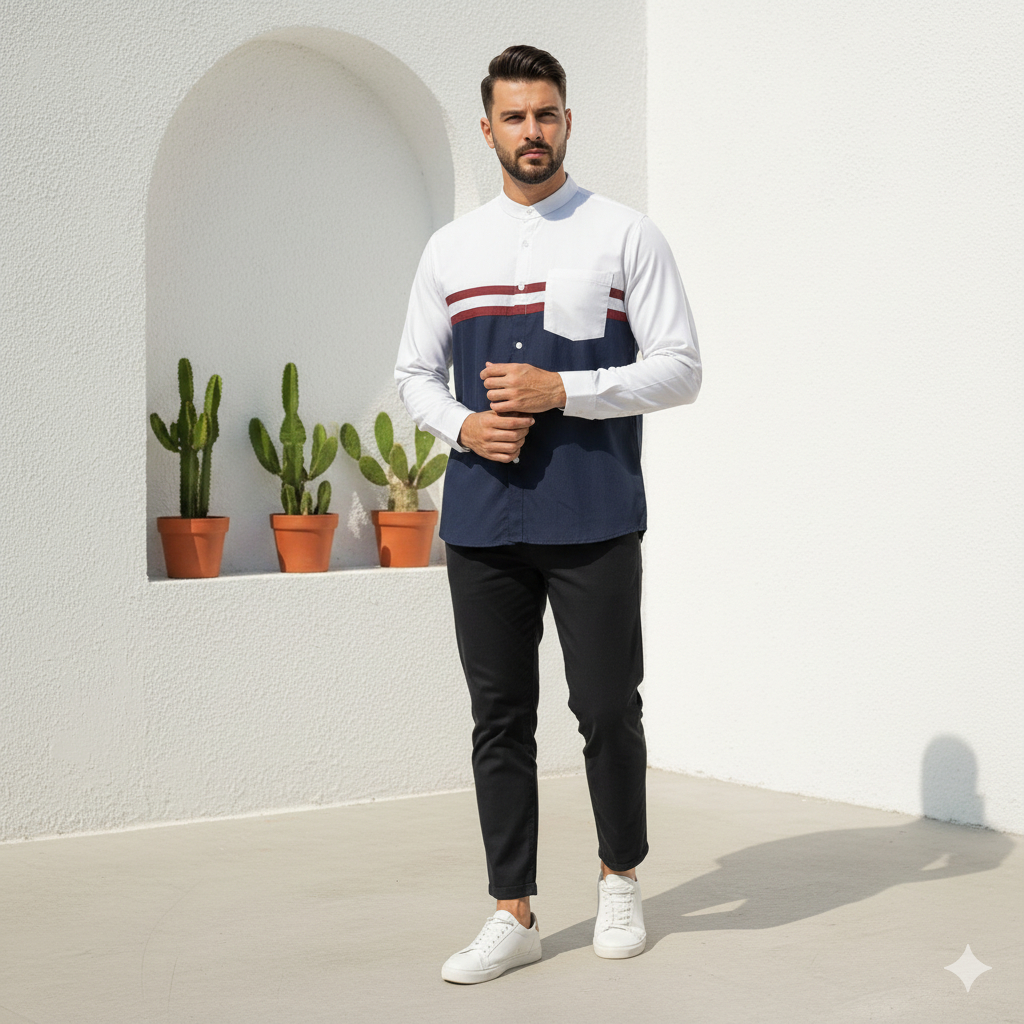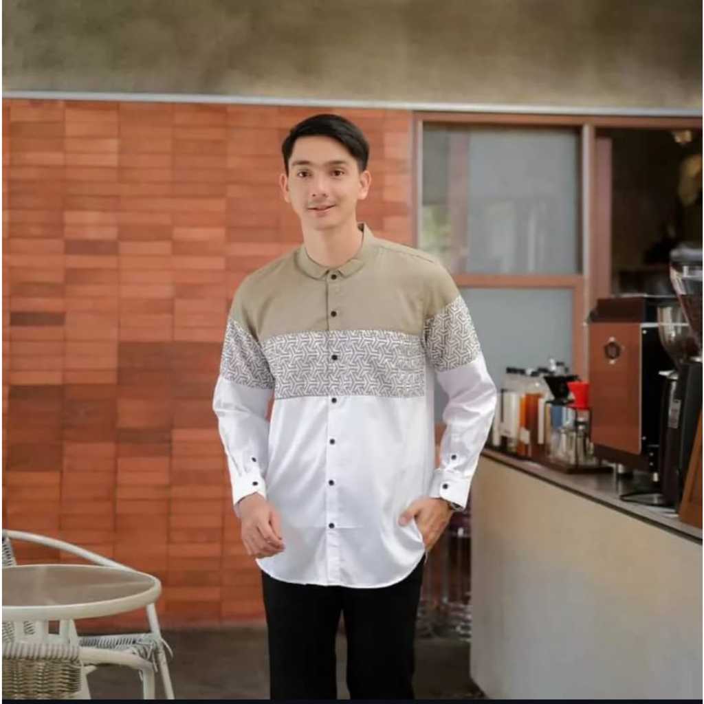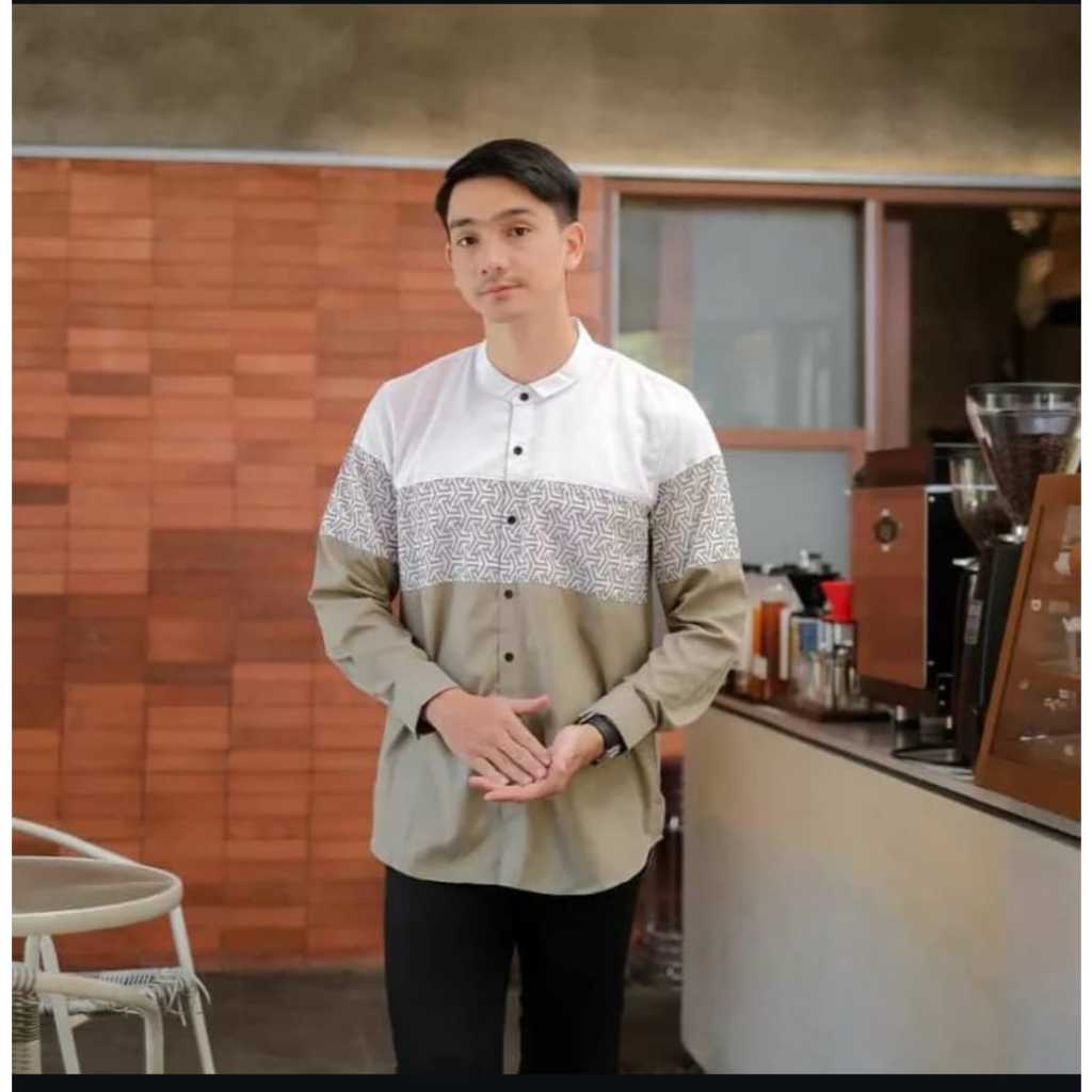 Ashsiddiq_store Kemeja Koko Pria Lengan Panjang Katun Premium Motif Etnik Modern Size M-XXL