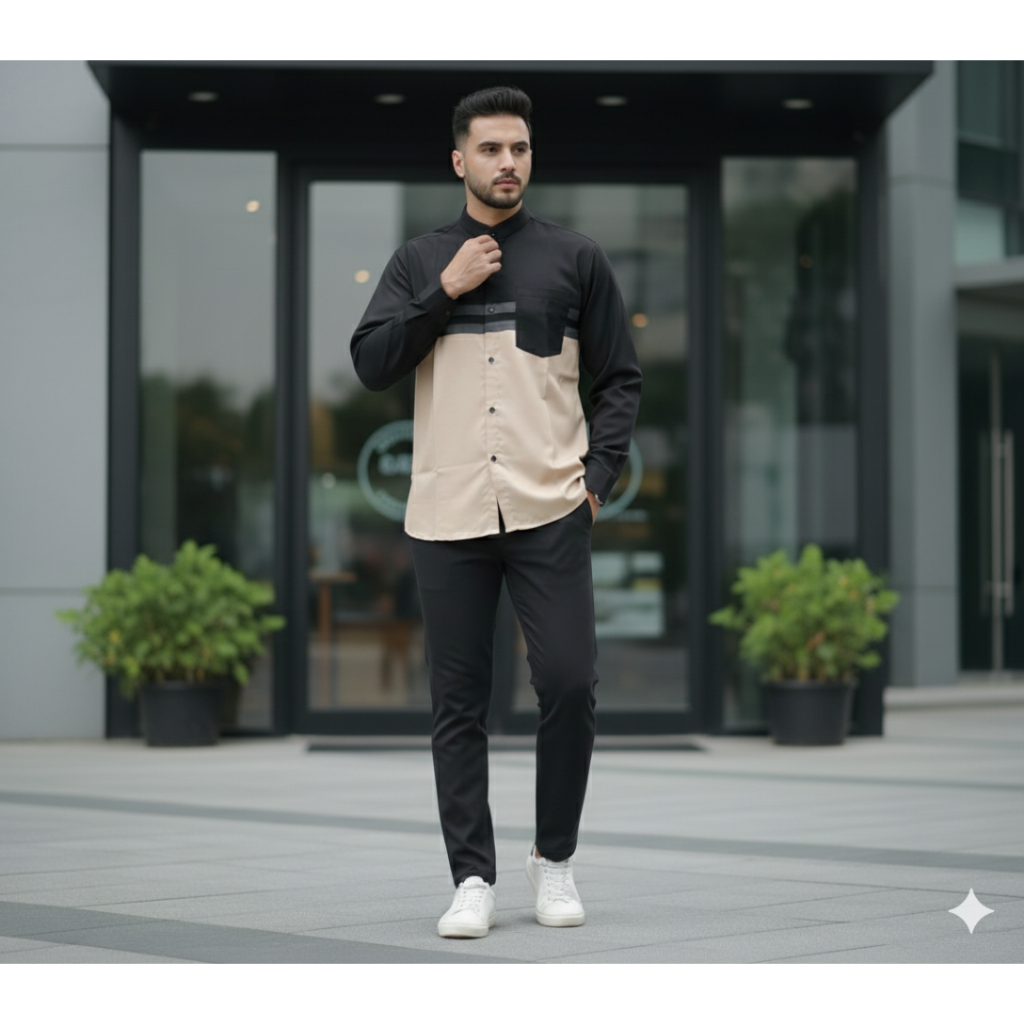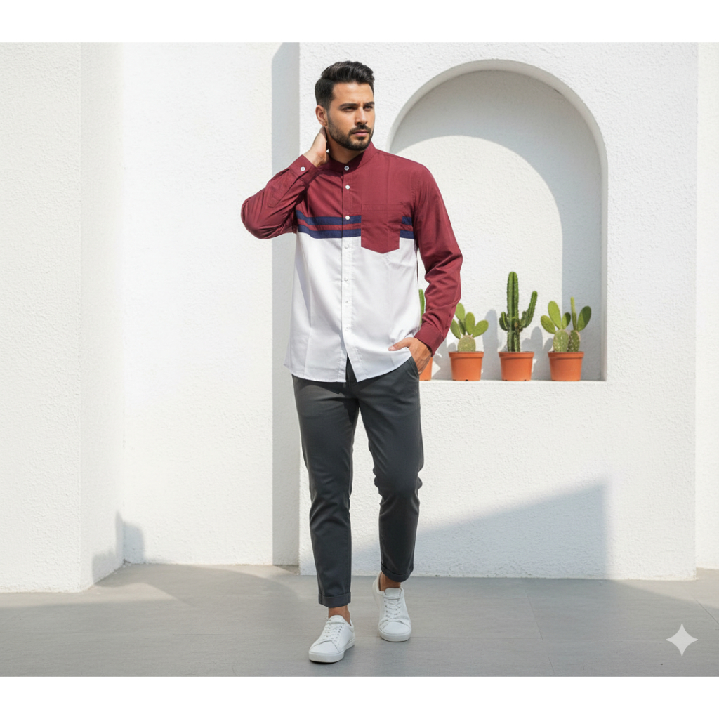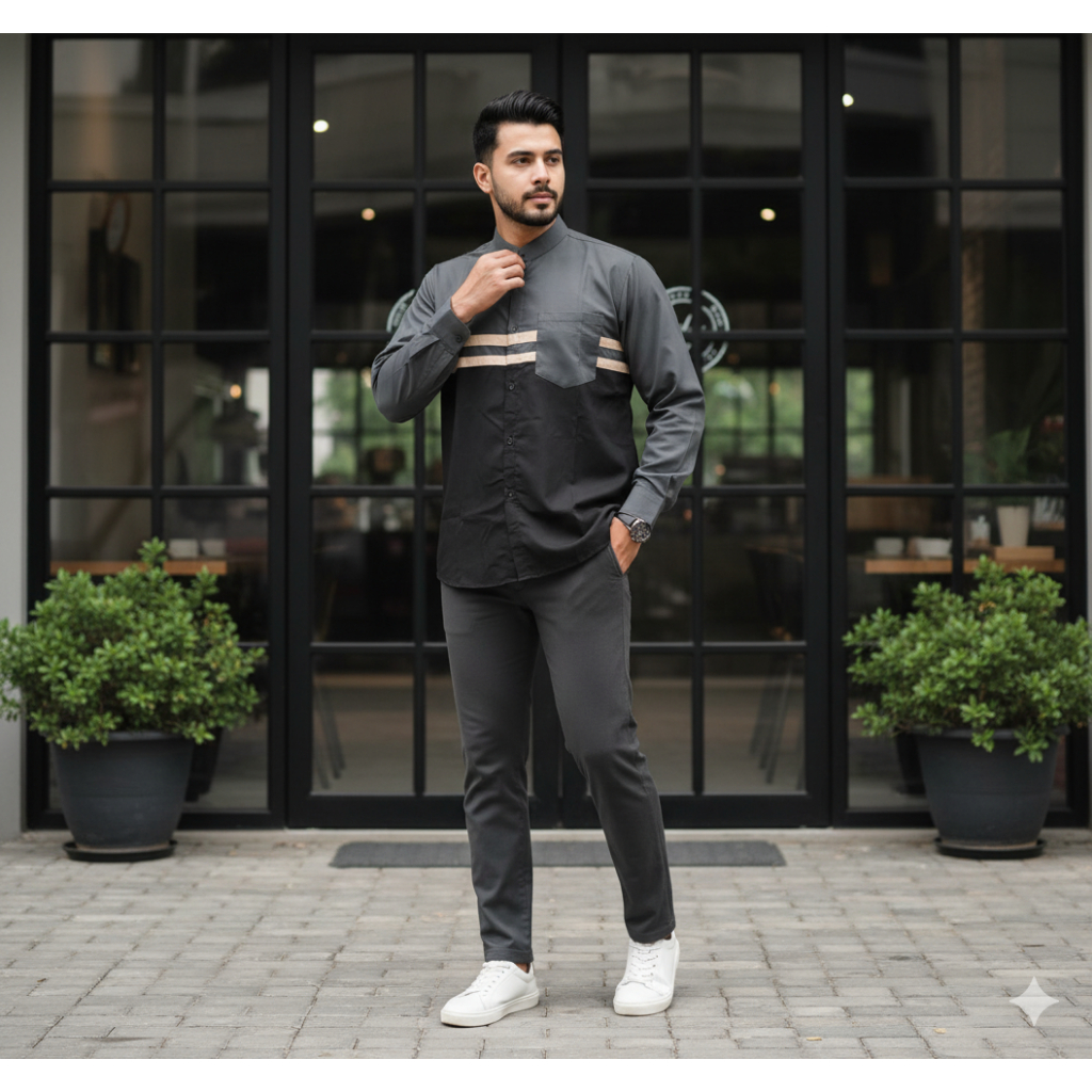 Ashsiddiq_store Kemeja Koko Pria Lengan Panjang Katun Premium Motif Etnik Modern Size M-XXL