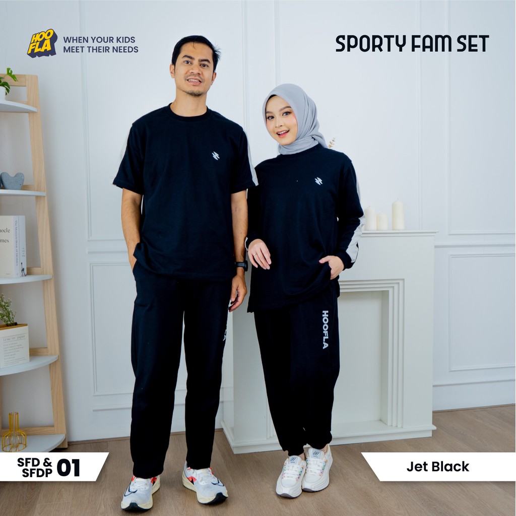 Hoofla Setelan Couple Keluarga Baju Olahraga Sporty Fam Set Jet Black