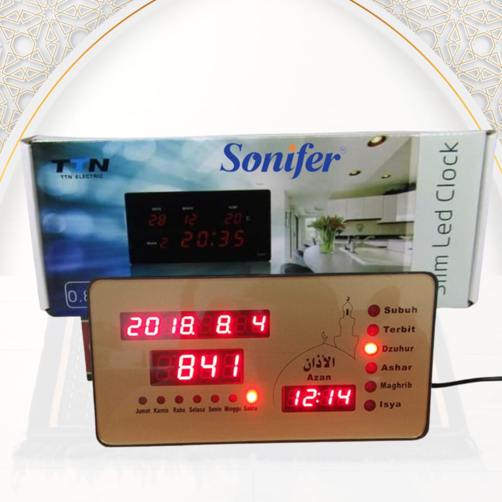 Sonifer Jam Adzan Mini Jam Sholat Digital 5 Waktu Otomatis FREE CUSTOM NAMA