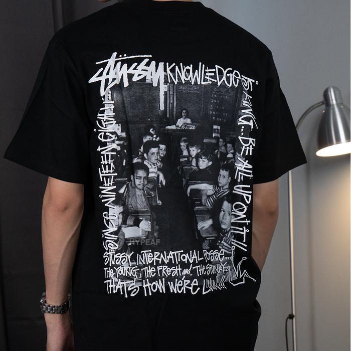 STUSSY CLASSROOM SHORT SLEEVE COTTON TEE [100 PERSEN ORIGINAL] - WHITE , S