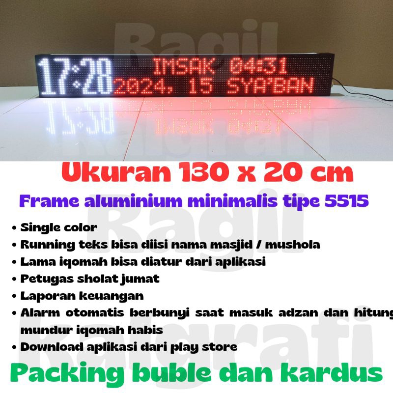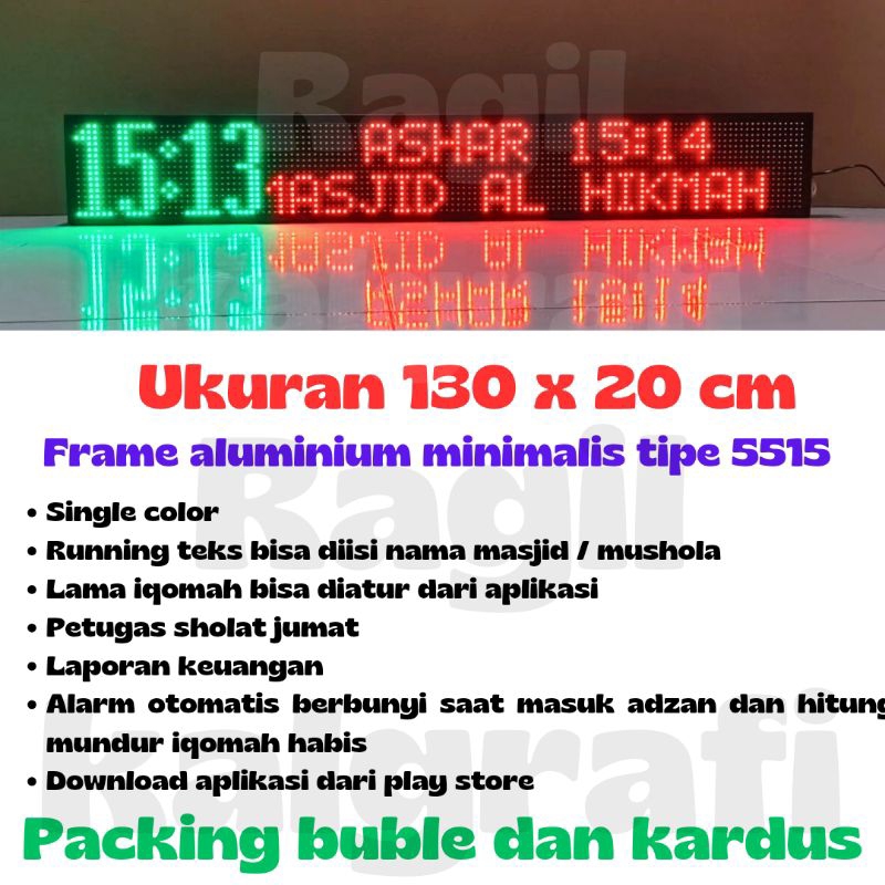 Jam Sholat Digital Masjid JWS P10 WIFI Jadwal sholat runing teks Jam Masjid uk 130 x 20 cm