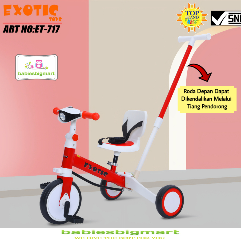 Sepeda Roda Tiga Exotic ET 714 / ET 717 Balence Bike Tricycle Push 4IN1 Anak
