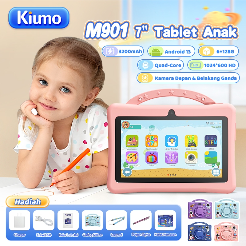 Kiumo M901 Tablet Anak Biru Muda 6+128G 7-Inch Tablet Edukasi Anak Android 13 3200Mah / 1024X600 Resolusi / 2 Camera / T