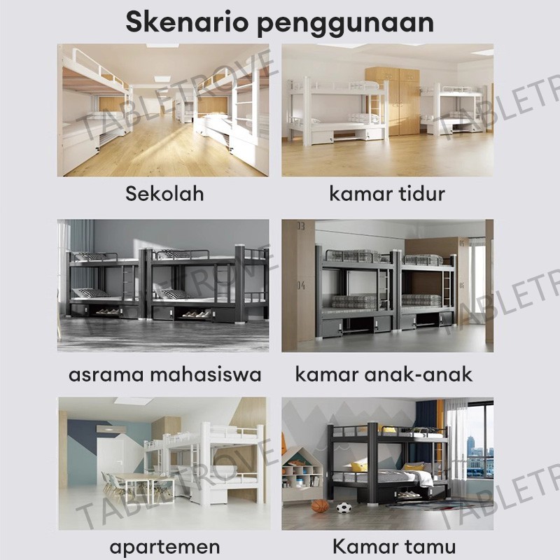 TABLETROVE Ranjang Tingkat Ranjang Besi 2 Tingkat untuk Kamar Kecil Hemat Ruang Mudah Bersih