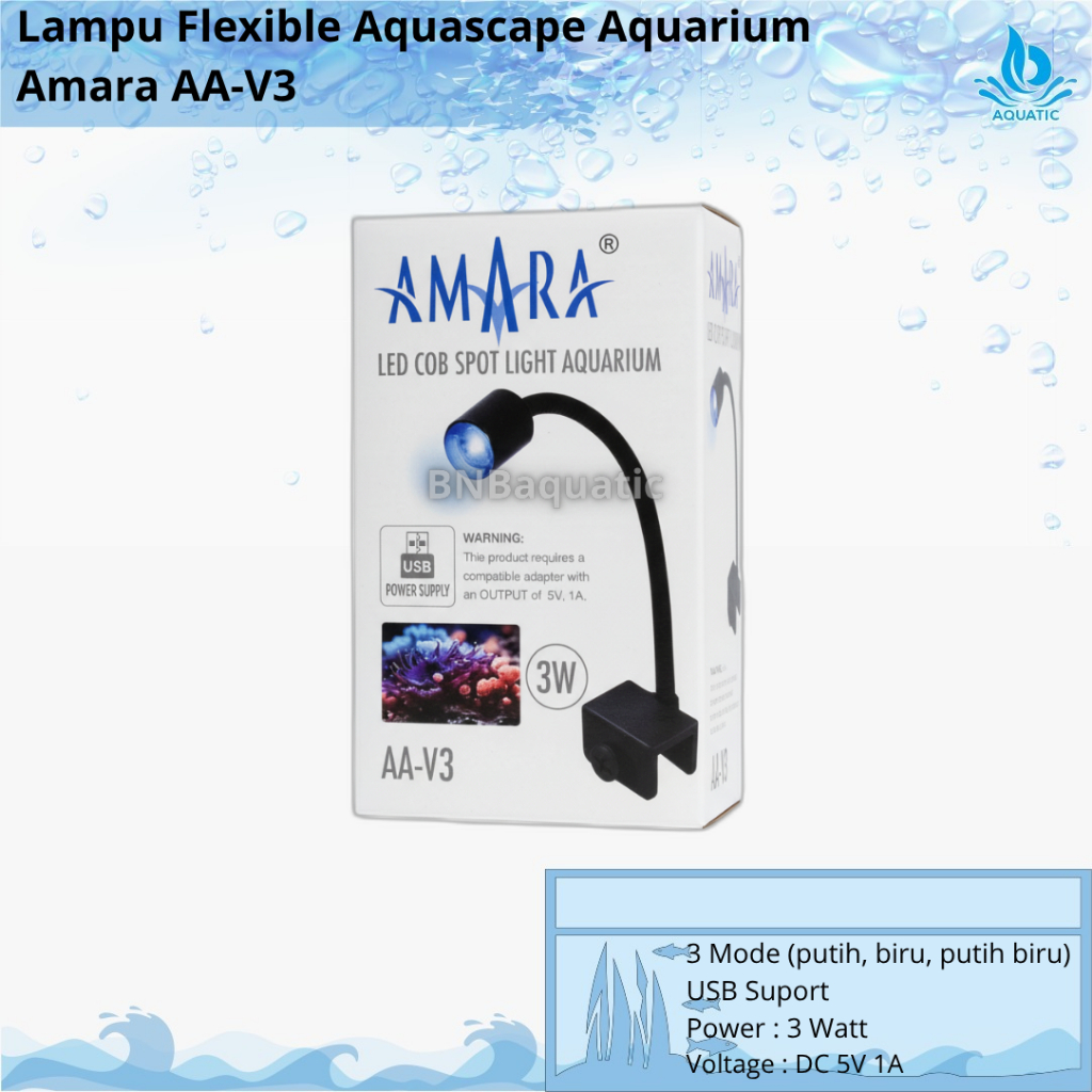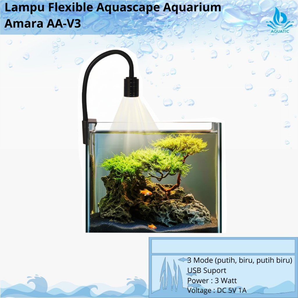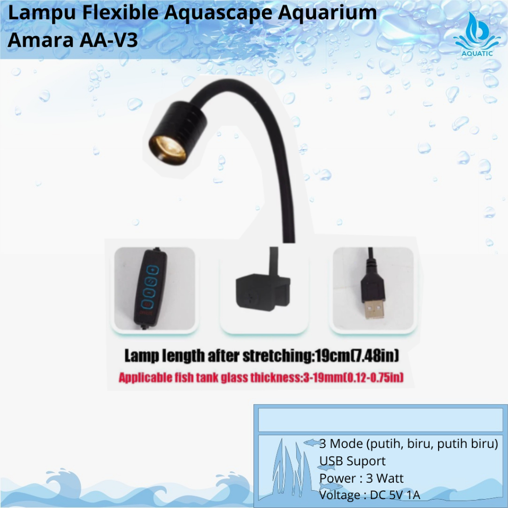 Lampu Jepit Aquarium Aquascape 3 Mode Bahan Alumunium Amara AA V3 COB Mini Spotlight USB AAV3