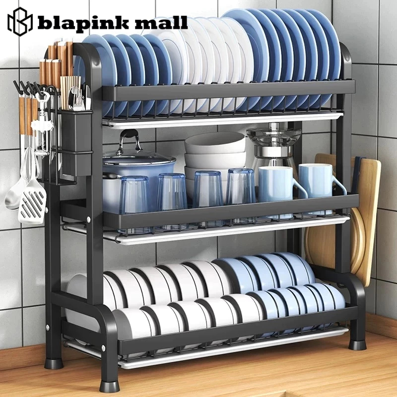 Rak Piring Stainless Steel Rak Cuci Piring Penyimpanan Dapur Muat Mangkuk Dan Piring
