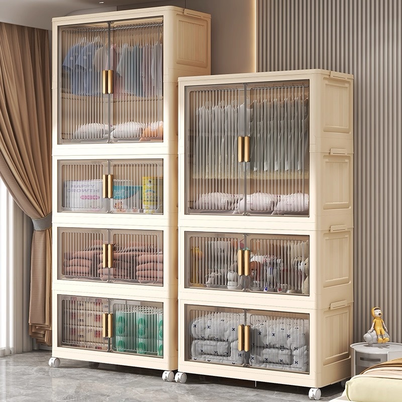 RAPIHOME Lemari Baju Lemari Pakaian Plastik Jumbo 80cm Lemari Plastik Gantung Dilipat Dengan Roda