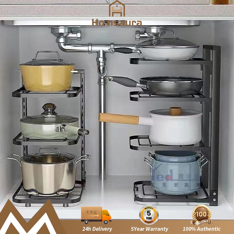 Homsaura Rak Panci Susun Rak Dapur Stainless Steel Rak Bawah Wastafel Rak Panci Multi Fungsi 2/3/4/5/7 Tingkat