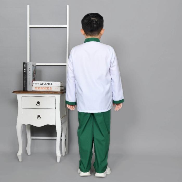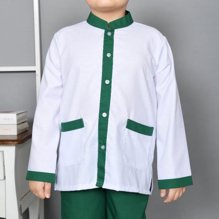 Seragam Madrasah Ibtidaiyah untuk SD Laki-Laki dan Perempuan dengan Baju List Hijau - Muslim, Koko