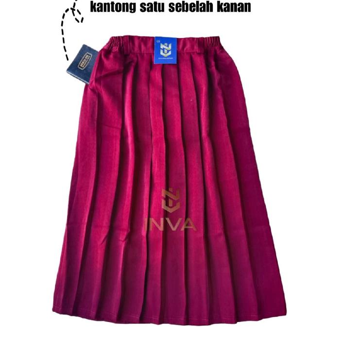 Rok Panjang Seragam Sekolah SD MI Madrasah Model RA Rempel Lipit Full Warna Merah Hitam Putih Coklat
