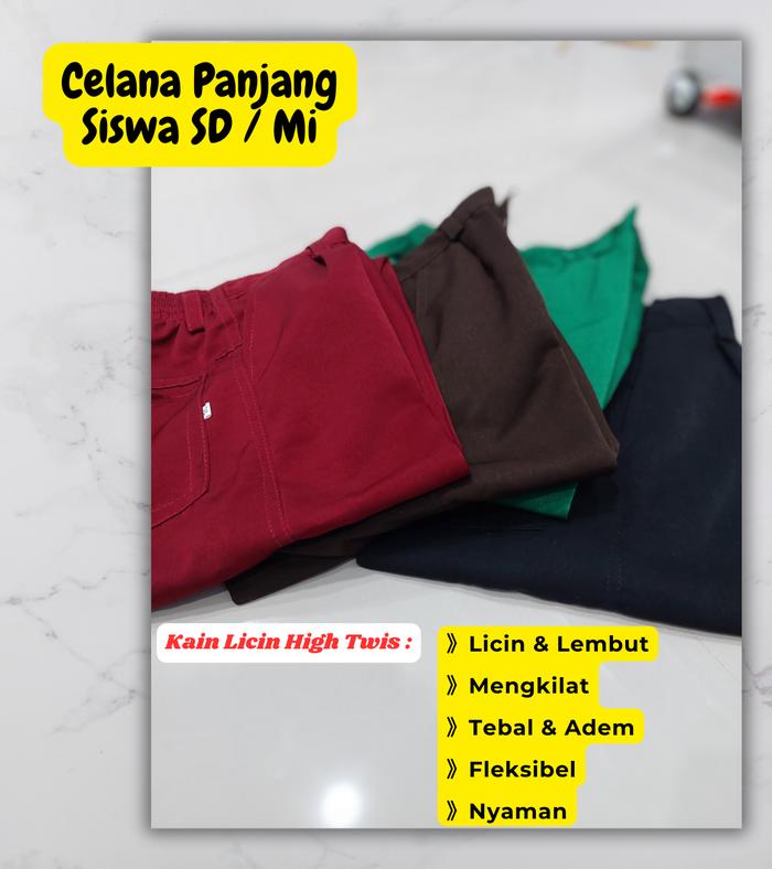 Celana Panjang SD/MI Kain Licin Hightwis Nyaman Pakaian Seragam Sekolah dan pramuka Fashion