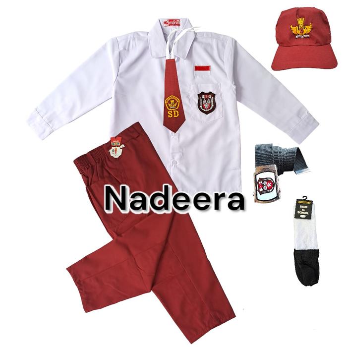 Paket Lengkap Seragam Sekolah Sd Merah Putih Anak Laki Baju Panjang Celana Merah Panjang Kelas 1-6