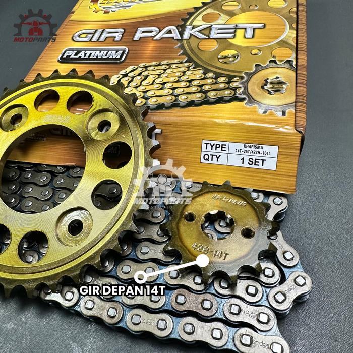 GEAR GIR SET GIR PAKET KARISMA SUPRA FIT NEW SUPRA X 125 REVO 110 LAMA 14 35T 428H Blade Gold - Spesifikasi