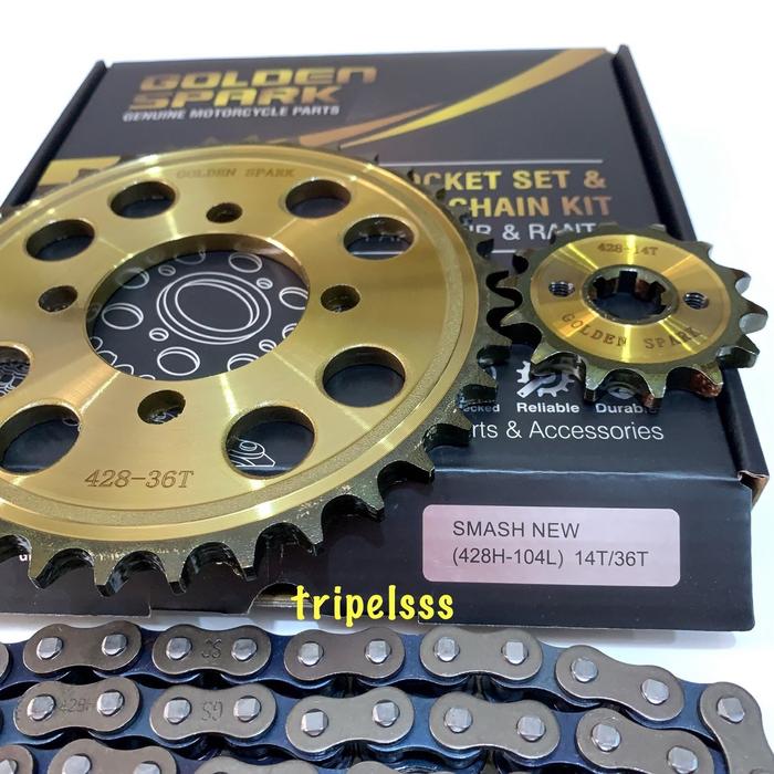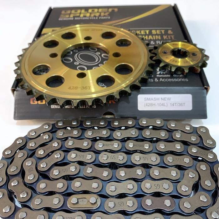 Gear Set Rantai Smash New / Smash 110 lama / smash Titan / Shogun 125 SP FL 428H - 104L 14 / 36T - Golden Spark