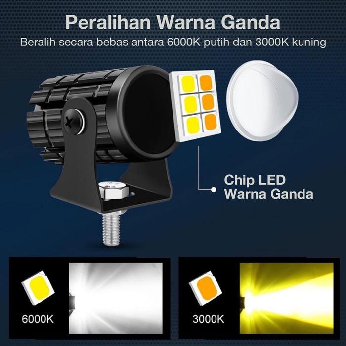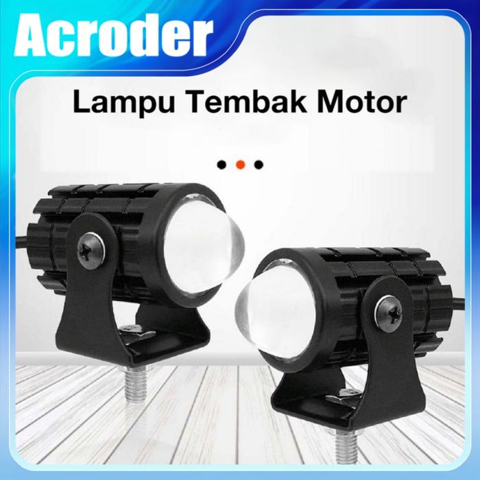 Acroder Lampu Tembak Motor Laser Led Mini 2 Warna Putih Kuning Super Terang Aluminium Motorcycle - Putih-kuning