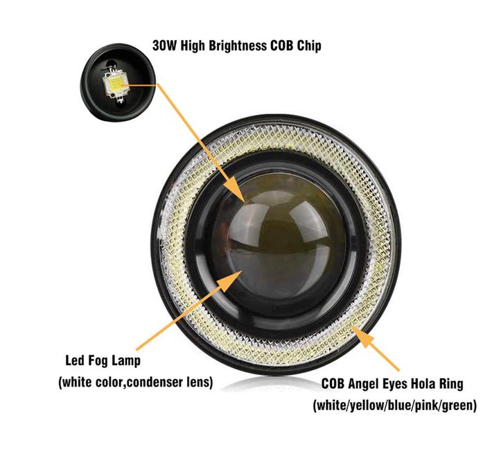 [Sepasang] Lampu LED Foglamp Angel Eyes 89mm dengan Halo Ring DC12V/10W - AE Biru