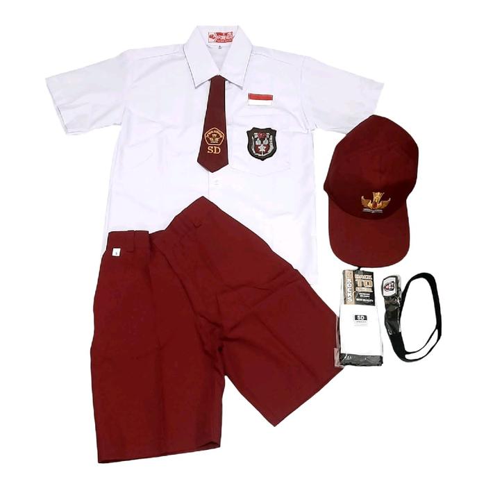 Setelan Seragam sekolah SD Merah Putih Laki-laki Lengan Pendek Celana Pendek Super Lengkap Kelas 1-6