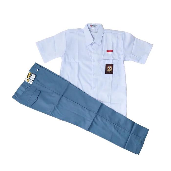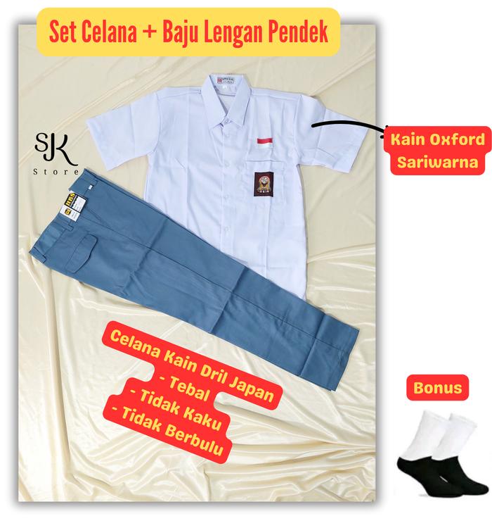 Setelan Lengkap Seragam SMA Untuk Anak Laki Laki Baju Lengan Pendek Bordir Celana Fashion