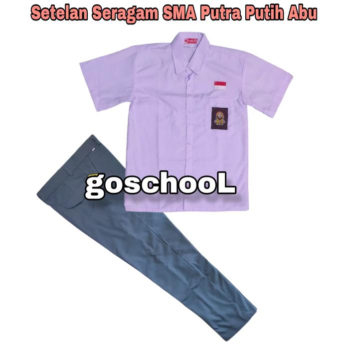 SETELAN SERAGAM SEKOLAH SMA LAKI LAKI PUTIH ABU ABU CELANA PANJANG BAJU PENDEK