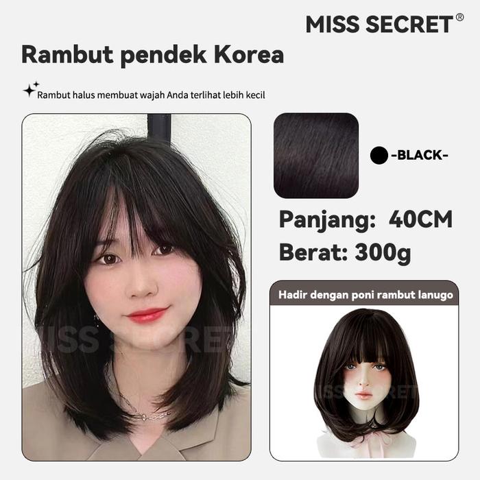 King Ka Wig Wanita Full Kepala Rambut Palsu Wanita Korea Rambut Pendek Natural Hair 40 cm - Hitam 40cm