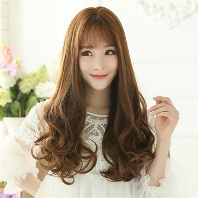 [Tiara] Wig Rambut Palsu Wanita Long Curly Bergelombang Poni Panjang Impor - Black